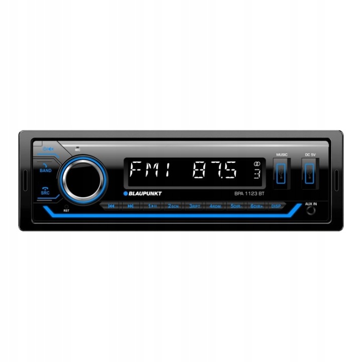 автомагнітола Bpa1123 Blaupunkt являє собою сучасний дизайн у форматі 1-DIN, який відрізняється різнобарвним освітленням, надаючи інтерʼєру автомобіля елегантний і сучасний вигляд. Вбудований радіотюнер дозволяє відтворювати радіостанції FM і AM, а за допомогою функції RDS користувач може легко шукати, ідентифікувати і вибирати улюблені станції, а також отримувати додаткову інформацію про прийнятому радіосигналі. модель bpa1123 дає вам можливість відтворювати музичні файли у форматах MP3 і WMA, безпосередньо з різних носіїв, таких як USB-накопичувачі або карти памʼяті SD