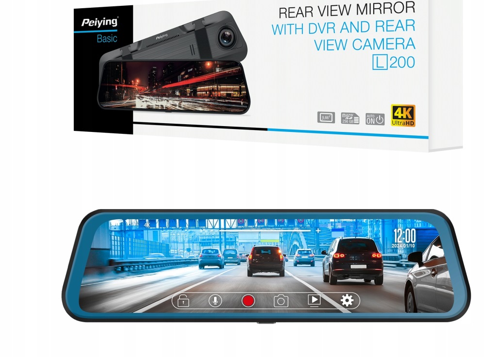 автомобільне дзеркало 4k Peiying з відеореєстратором і камерою заднього виду L200