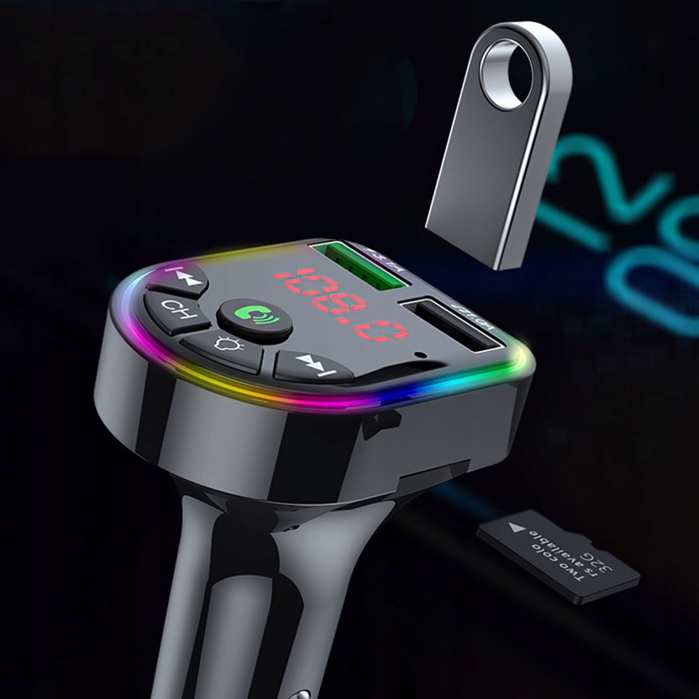 FM-передавач F5 - це пристрій, за допомогою якого ви зможете слухати музику прямо з вашого телефону в автомобілі. Він також має можливість відтворювати файли з карт памʼяті. Передавач був оснащений світлодіодним дисплеєм з вбудованими функціональними кнопками, що дозволило повністю виключити необхідність установки додаткового додатка для роботи передавача. З їх допомогою ви можете управляти підсвічуванням, пропускати пісні або змінювати частоту. Світлодіодний дисплей показує поточну частоту. Передавач працює за стандартом Bluetooth 5.0, має вбудований мікрофон, який дозволяє здійснювати високоякісні голосові дзвінки. Універсальний розʼєм прикурювача робить пристрій сумісним практично з будь - яким автомобілем, оснащеним установкою 12 або 24 В. зарядка можлива завдяки USB-портів потужністю до 3,1 а.