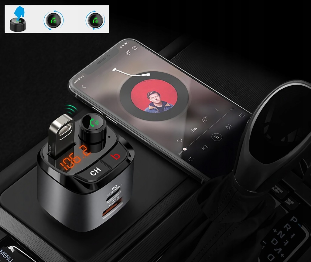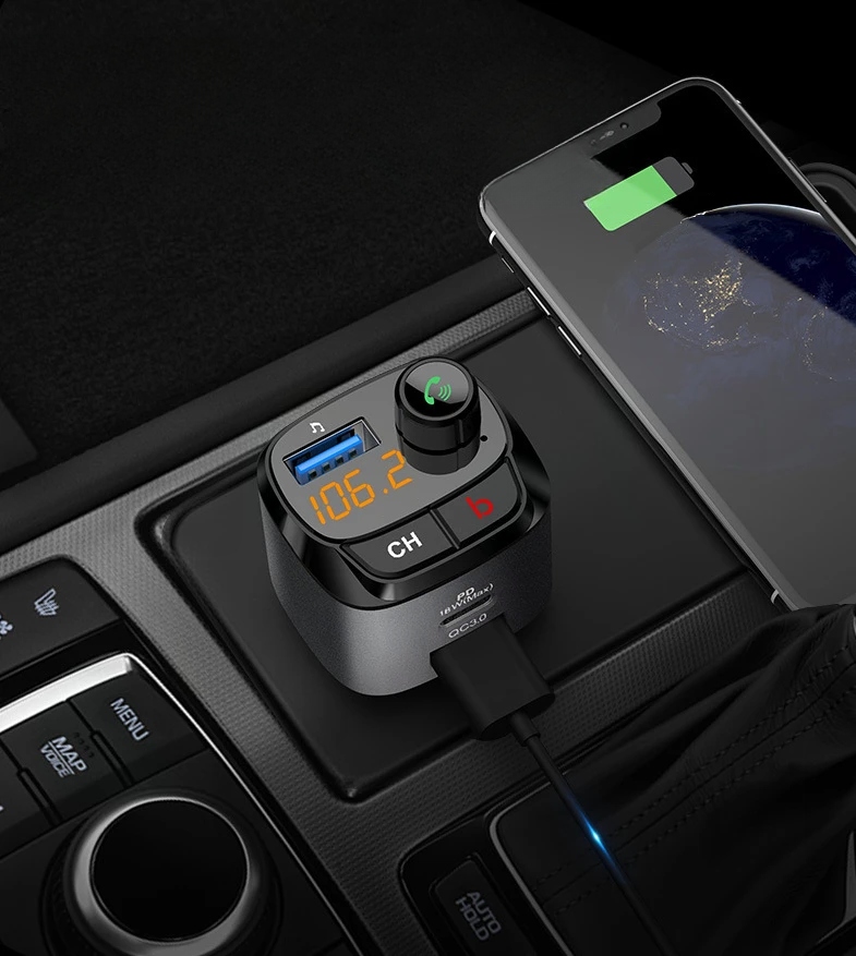 автомобільний FM-передавач гучного звʼязку BT5.0 3xUSB QC3.0 Bass BOOST