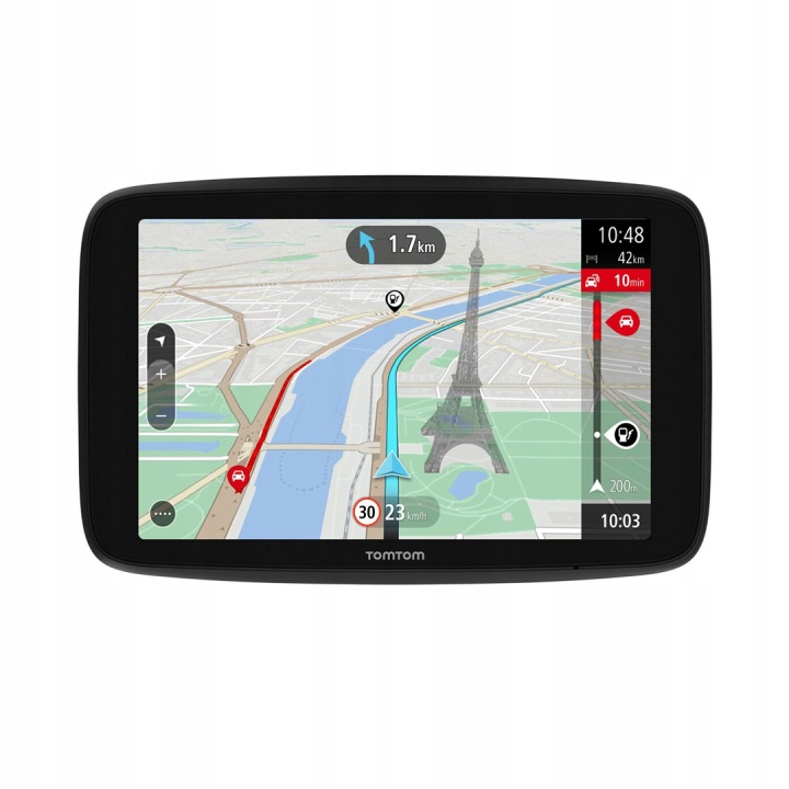 за допомогою функції TomTom Traffic ви отримаєте точні повідомлення про локальних перешкоди , таких як блокпости, аварії і пробки, а також приблизний час прибуття на основі цієї інформації. підписка на TomTom Traffic включена в комплект і не несе ніякої додаткової плати. Щоб використовувати цю функцію, просто підключіть навігаційний пристрій до смартфону з активними мобільними даними.