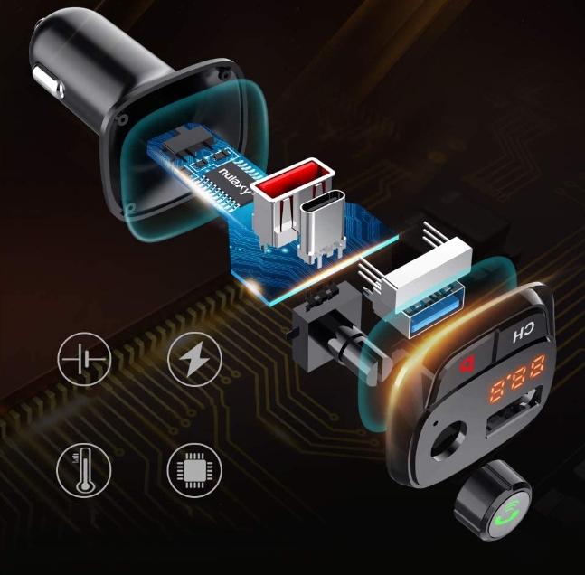 за допомогою передавача ви можете заряджати свої пристрої, використовувати гучний звʼязок, відтворювати улюблену музику через автомагнітолу.