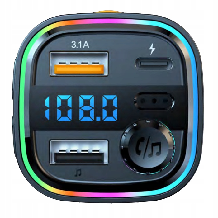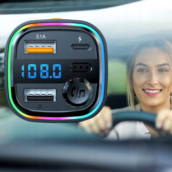 Transmiter оснащений режимом гучного звʼязку, який дозволяє безпечно вести телефонні дзвінки під час водіння.розʼєми USB і Type-C забезпечують швидку зарядку пристроїв з вихідною потужністю 5 в 3,1 А, а яскраве світлодіодне підсвічування додає стиль. Пристрій працює від напруги 12-24 В, що робить його сумісним як з легковими, так і з вантажними автомобілями.