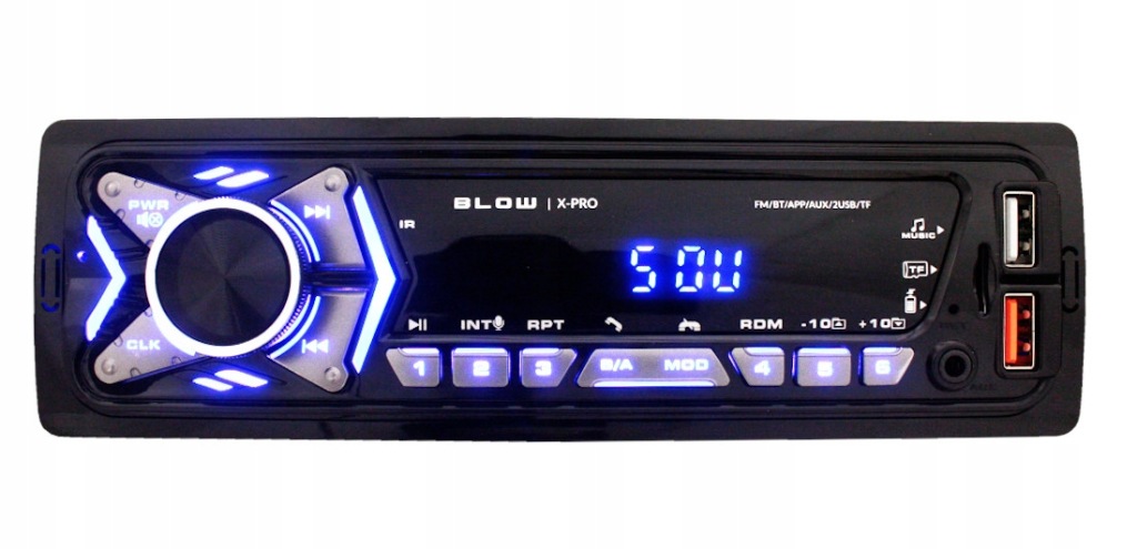 сучасний і функціональний автомобільний радіоприймач BLOW X-PRO 1 оснащений двома входами USB слот microSD і AUX-це дозволяє відтворювати музику з портативних пристроїв і зовнішніх накопичувачів, а також заряджати їх. Крім того, радіо має модуль Bluetooth, який дозволяє транслювати музику з телефону і здійснювати телефонні дзвінки Завдяки функції гучного звʼязку.