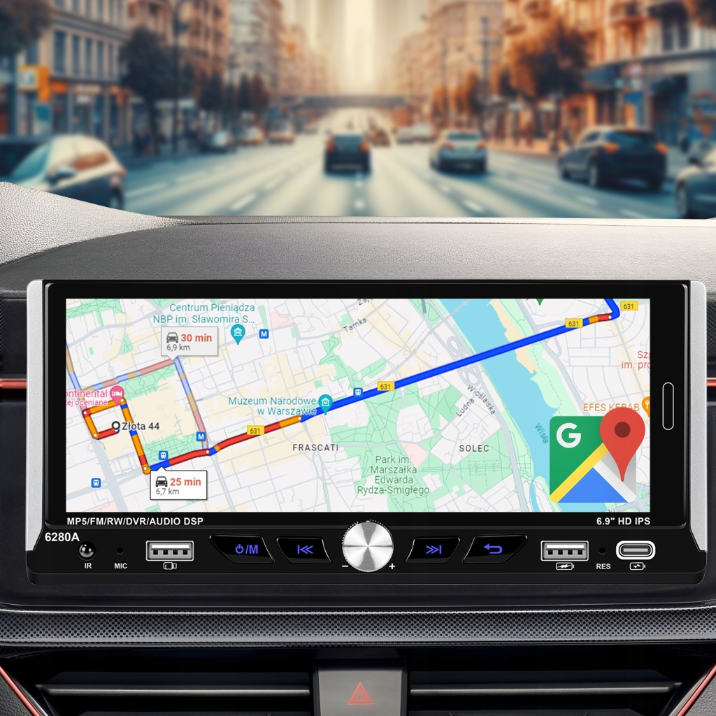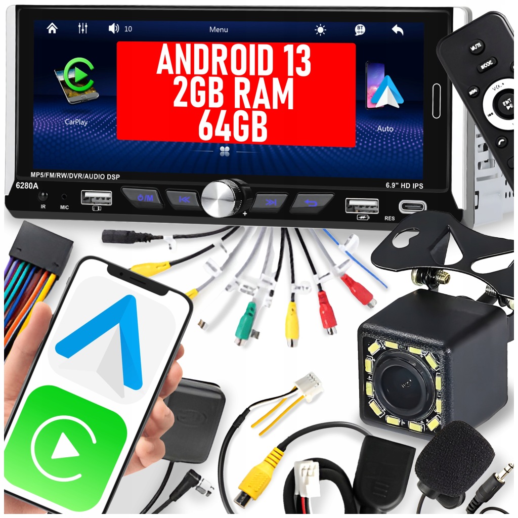 АВТОМОБІЛЬНИЙ РАДІОПРИЙМАЧ 1 DIN ANDROID AUTO CARPLAY WIFI RDS GPS 2 ГБ / 64 ГБ 6,9"