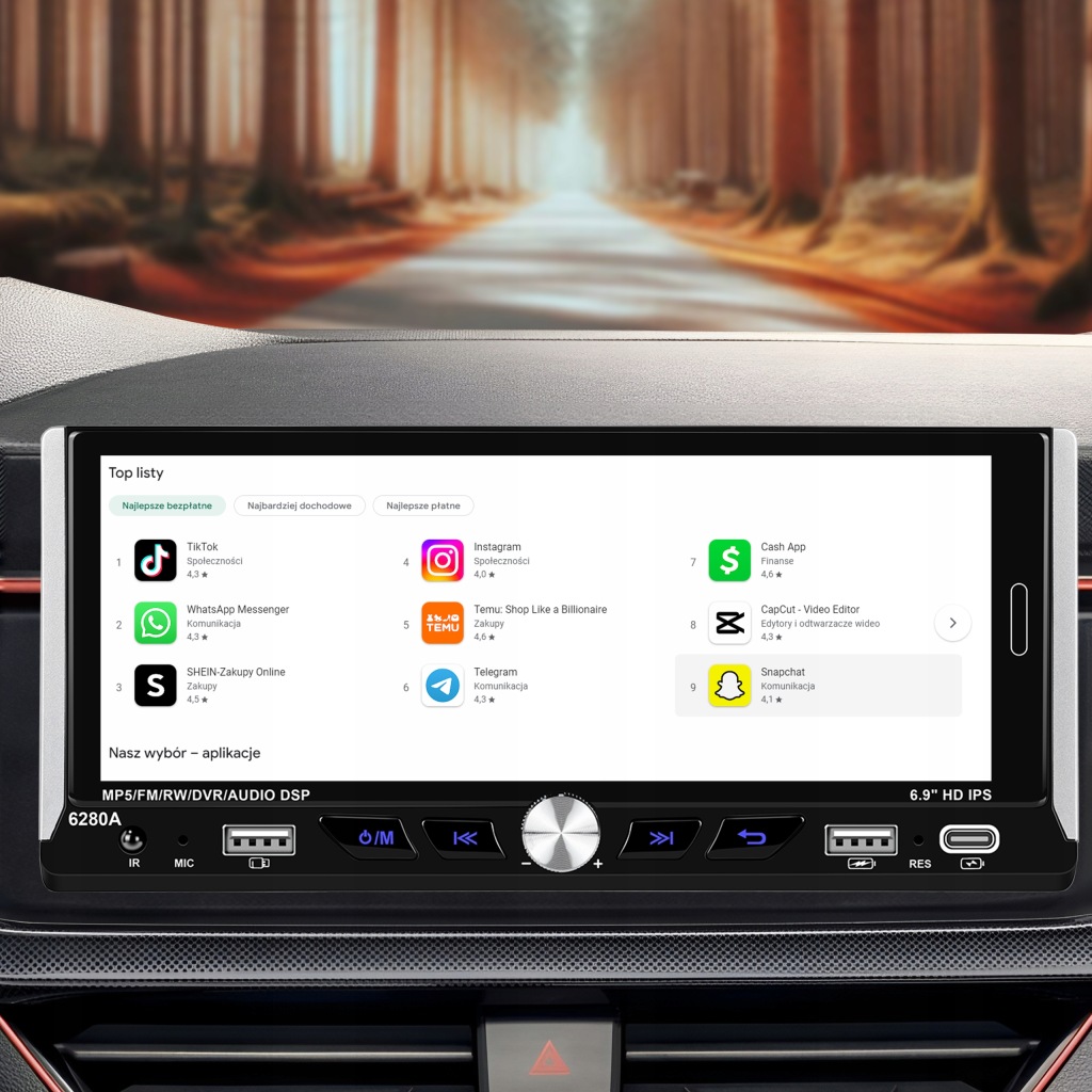 високоякісний автомобільний радіоприймач, 6,9-дюймовий сенсорний екран високої якості, який перетворює ваш автомобіль в справжній мультимедійний центр.вбудована операційна система Android 13 з польським меню, дозволяє переглядати Інтернет, переглядати світові новини, грати в ігри. дивіться улюблені відео, переглядайте фотографії. радіо має вбудований гучного звʼязку, який підвищує безпеку під час водіння і дозволяє уникнути штрафів.