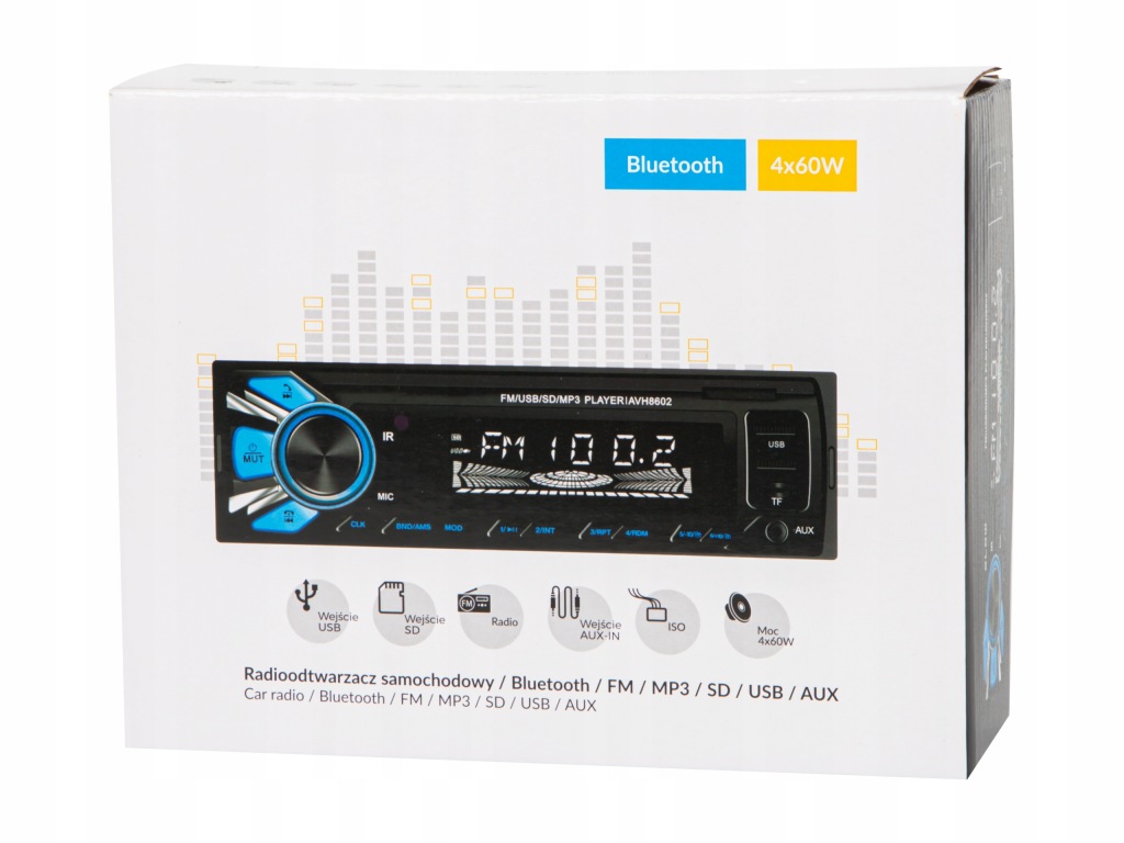 Автомобільний радіоприймач 1-DIN BLUETOOTH 2x USB AUX SD MP3 пульт дистанційного керування батарея комплект