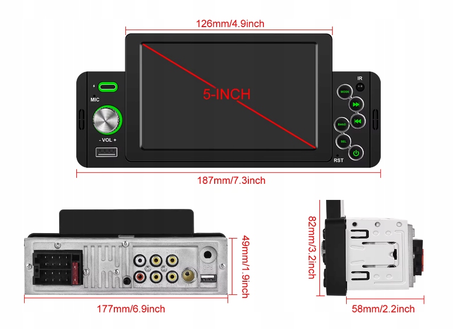 АВТОМОБІЛЬНИЙ РАДІОПРИЙМАЧ 1DIN BLUETOOTH 5 " СЕНСОРНИЙ ЕКРАН APPLE CARPLAY ANDROID AUTO
