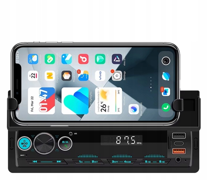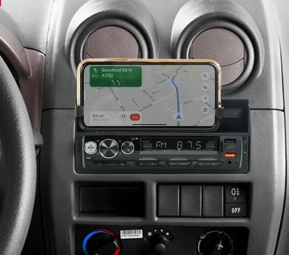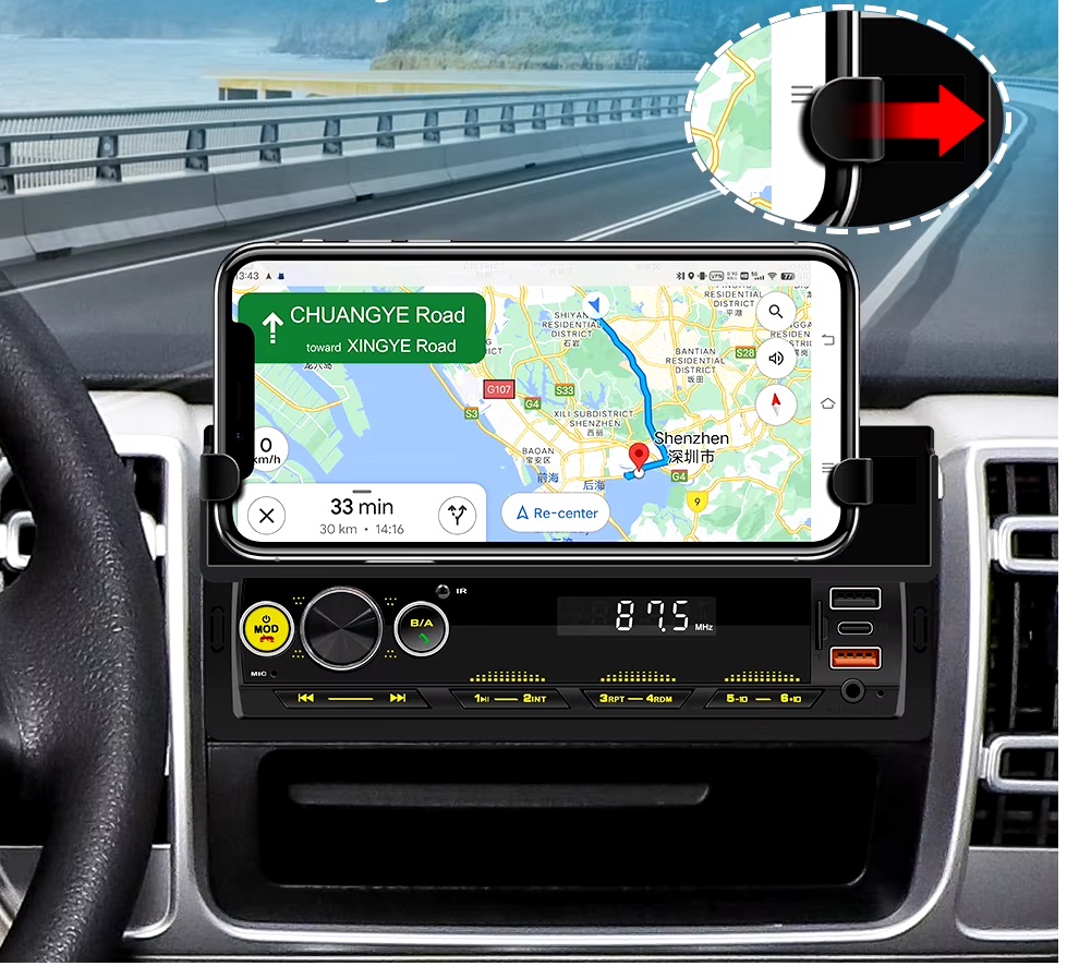 не тільки автомобільне радіо, цей пристрій також поставляється з тримачем для телефону зверху. Мобільний телефон можна зберігати в безпечному, організованому та легкодоступному місці під час подорожі. Кут огляду мобільного телефону також підходить для перегляду додатків карт під час подорожей.