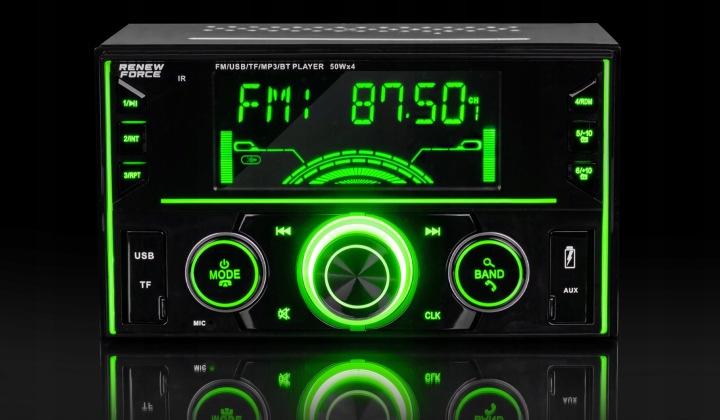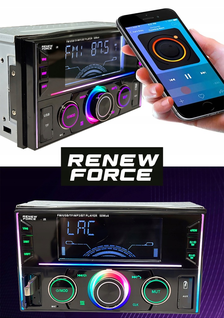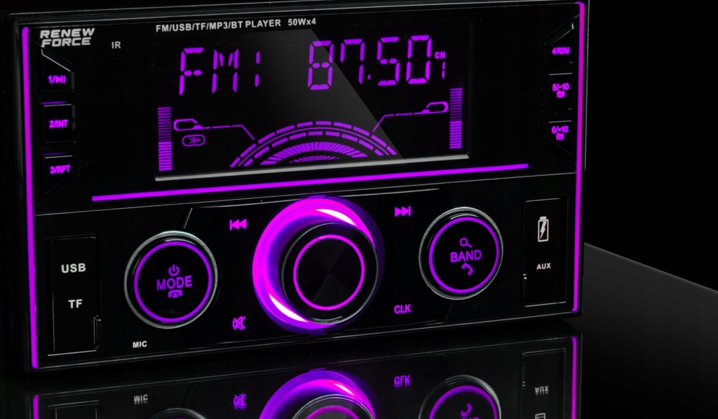 автомагнітола Renew Force 2 DIN оснащена великим РК-дисплеєм , який не тільки відображає інформацію про станції або треку, але також забезпечує зручність використання і читабельність навіть при русі під інтенсивним сонячним світлом.