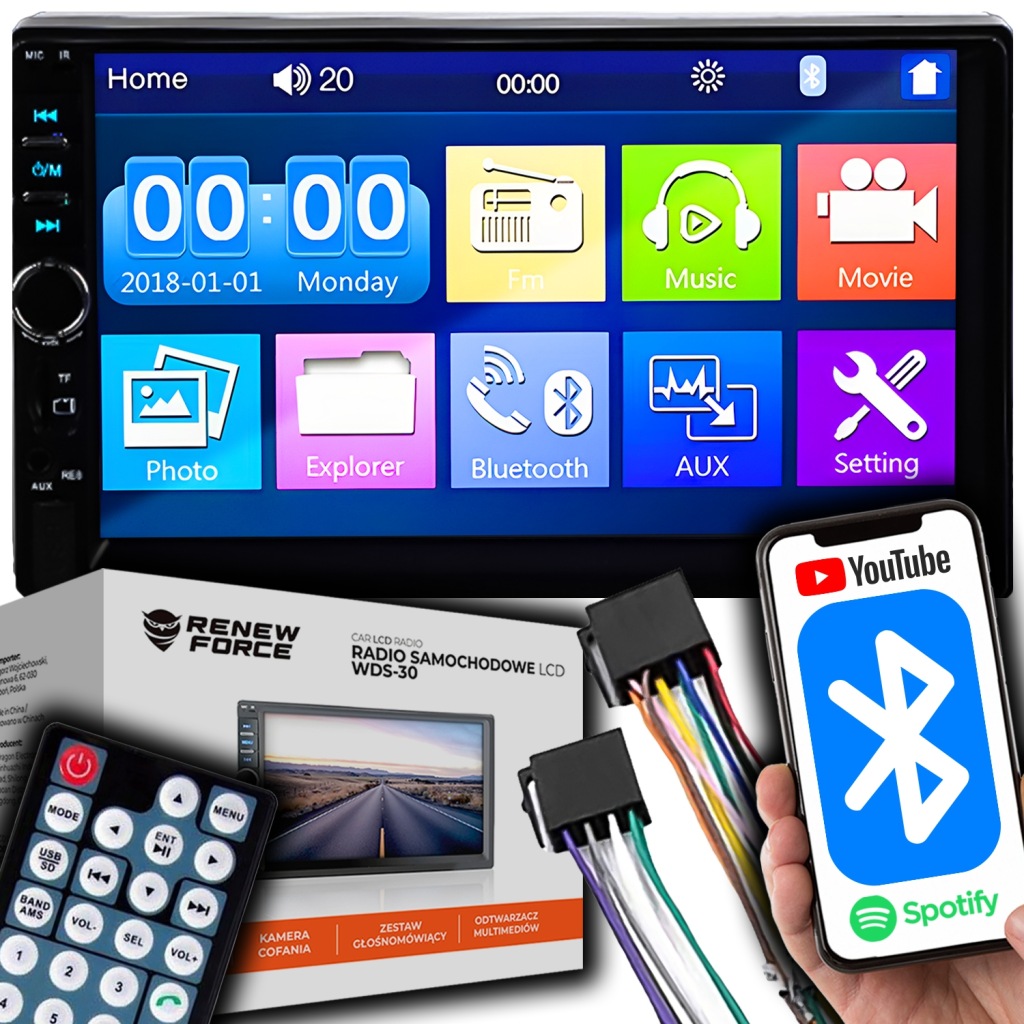 радіо має 7-дюймовий сенсорний екран , за допомогою якого ми можемо легко і легко використовувати функції пристрою і вільно налаштовувати його. Крім того, він являє собою своєрідну мультимедійну базу, завдяки якій ми можемо відтворювати файли аудіо та відео. Завдяки функції Bluetooth пристрій може виступати в якості гучного звʼязку для нашого телефону.