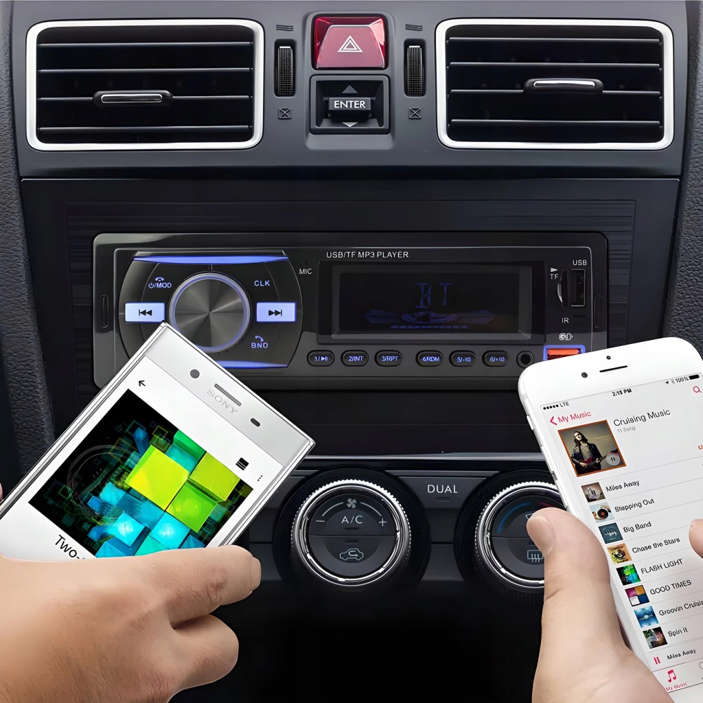 радіо має вихід AUX, до якого ви можете підключити свій телефон і відтворювати музику з нього. Втомилися слухати нудні радіопередачі? Ви б краще послухали свою улюблену музику? підключіть телефон до входу AUX, увімкніть все, що хочете, і слухайте по радіо! Це зробить вашу подорож приємною.