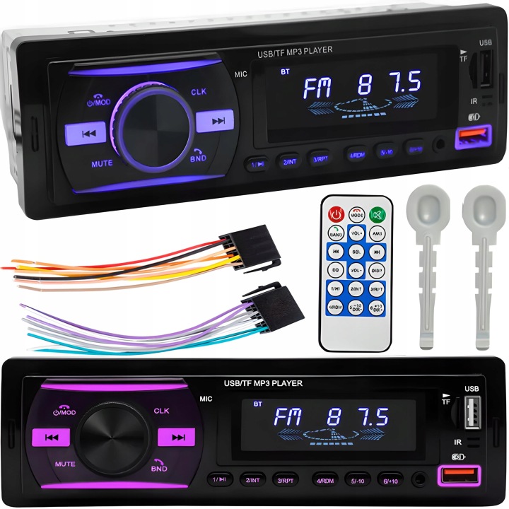 пульт дистанційного керування, включений в комплект , дозволяє управляти радіо на відстані, користувачами вашого автомобіля. Еквалайзер, з іншого боку, допомагає слухати музику в різних режимах відтворення m.in бас, поп, джаз, рок. Радіо також має цілих 6 кольорів підсвічування. завдяки йому ваше прослуховування музики не буде нудним.