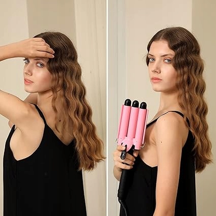♥ щипці для завивки 3 хвилі : 25 мм потрійні хвилясті бочки з автоматичним регулюванням натягу. Ви можете мати будь-які локони відповідно до ваших побажань, створюючи красиві безперервні хвилі, щоб змінити свій повсякденний стиль. Легко створюйте різні локони і зберігайте ефект завивки