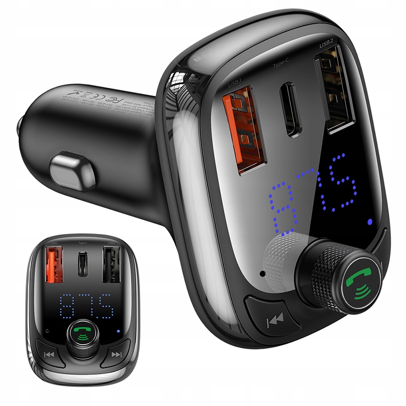 BASEUS BLUETOOTH ПЕРЕДАВАЧ / ШВИДКЕ ЗАРЯДНИЙ ПРИСТРІЙ ДЛЯ АВТОМОБІЛЯ ЧОРНИЙ