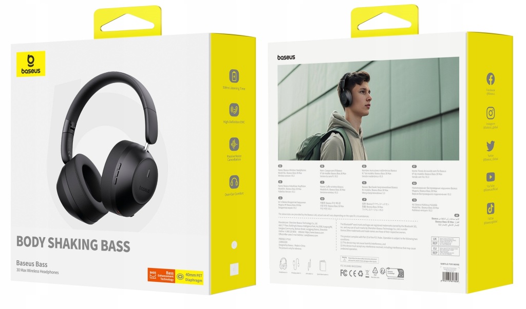Baseus Bass 30 Max-це просунуті навушники з глибокими басами завдяки технології посилення звуку і драйверам 40 мм.оснащений стабільним зʼєднанням Bluetooth 5.3, пропонує до 50 годин відтворення музики на одній зарядці. Вони мають складну конструкцію, телескопічну наголовʼя і ультрамʼякі регульовані амбушюри для комфорту навіть при тривалому використанні.