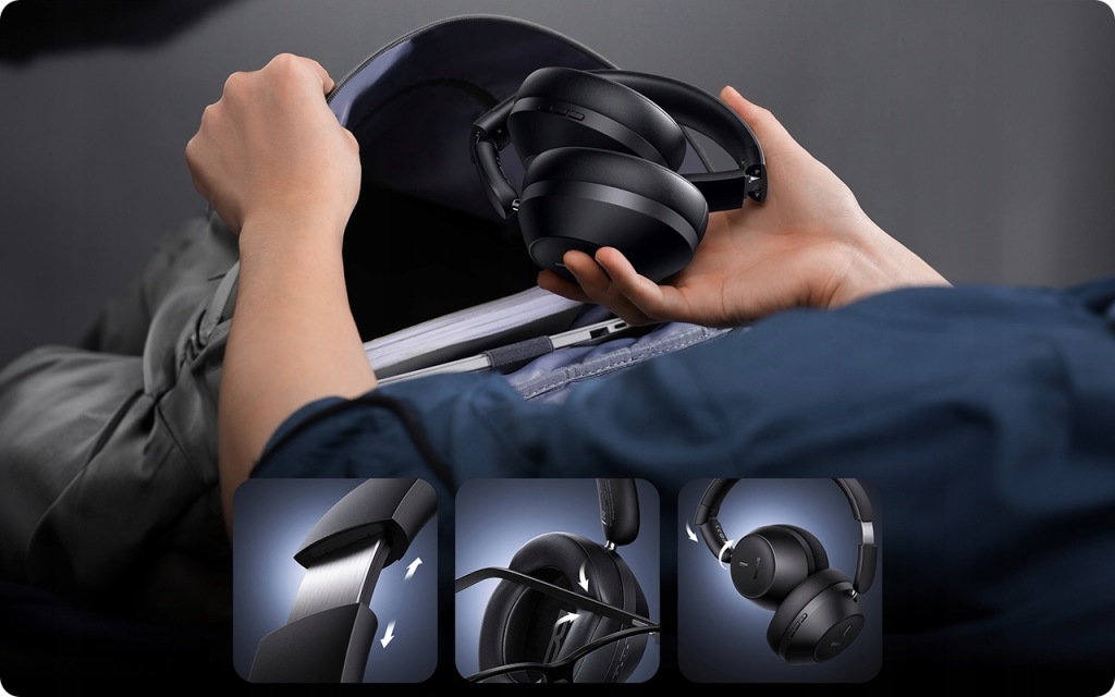зручність використання : складна конструкція, телескопічна повʼязка на голову і ультрамʼякі регульовані амбушюри забезпечують комфорт навіть під час багатогодинних сеансів прослуховування.