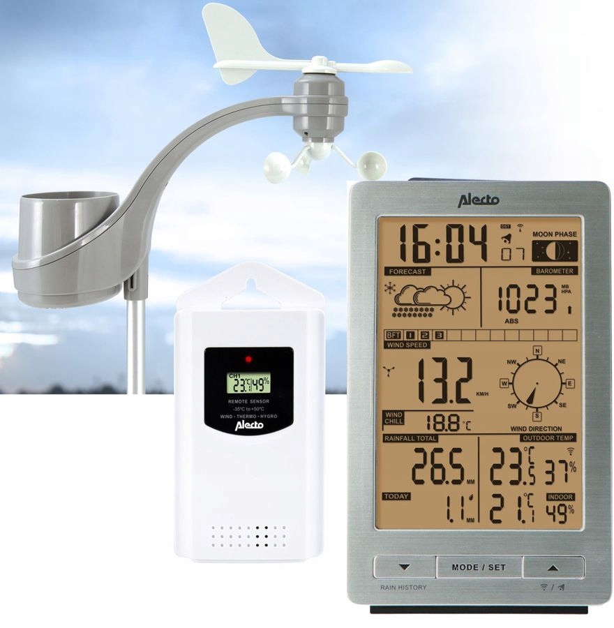 прогноз погоди, повністю адаптований до конкретного місця розташування, можна переглянути на метеостанції Alecto WS-3300. Цей пристрій вимірює велику кількість даних про погоду та створює власний прогноз погоди. Ця професійна бездротова метеостанція оснащена повним набором датчиків, а саме термо, гігрометром, дощем, напрямком вітру і лічильником швидкості вітру.