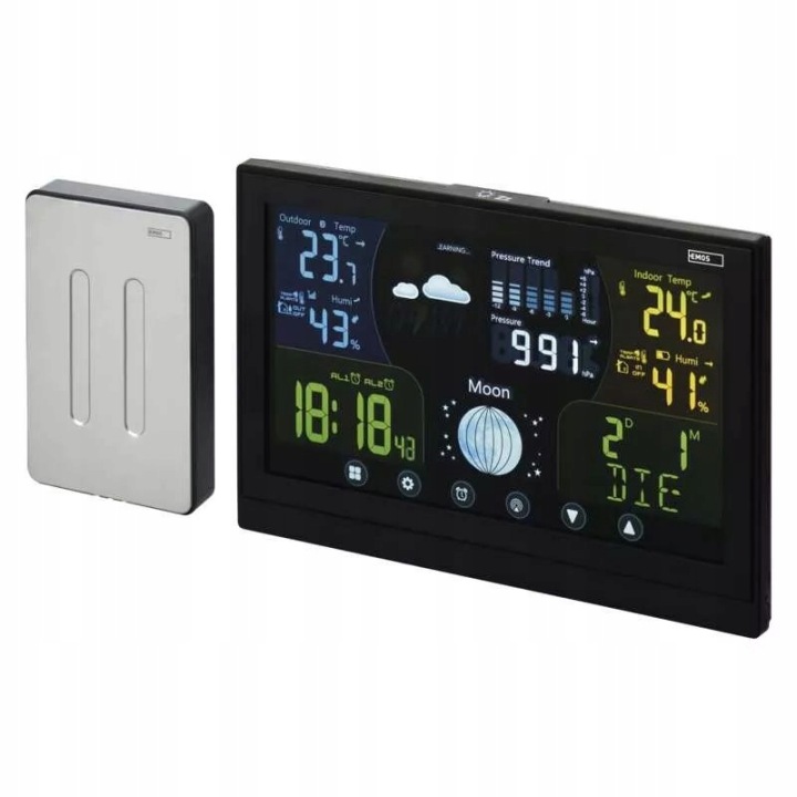 Бездротова метеостанція EMOS E6018 сенсорний екран діапазон 100 м Чорний
