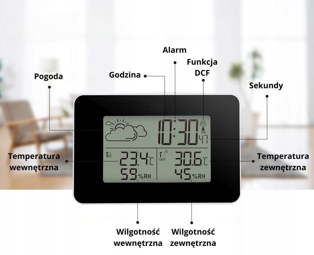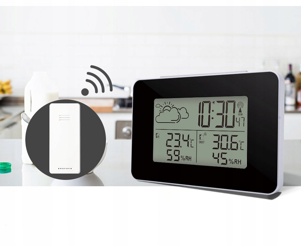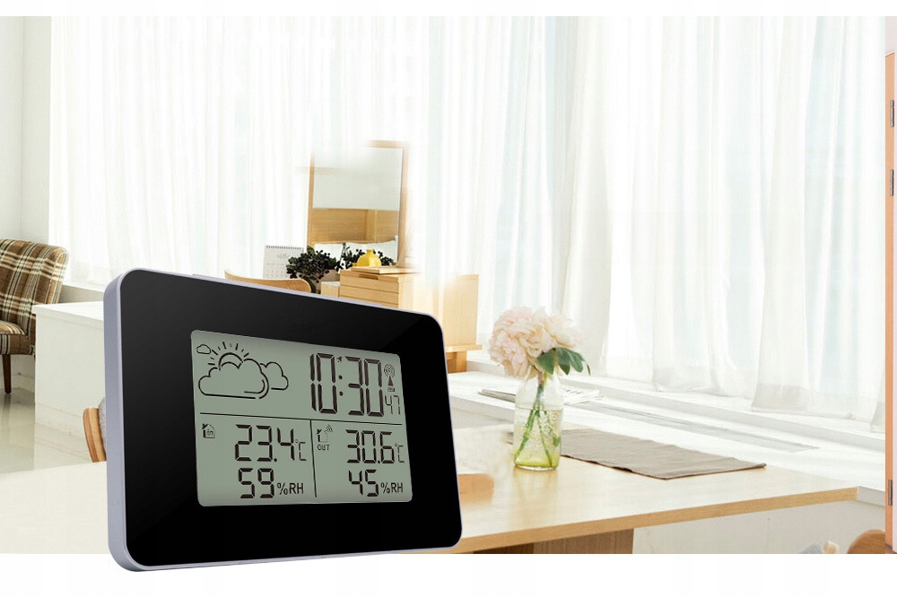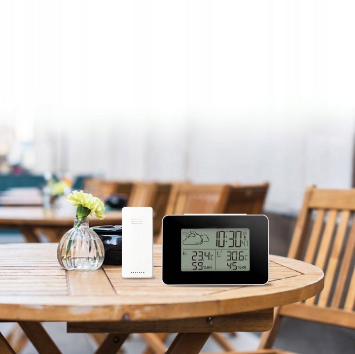 бездротова метеостанція-відмінний інструмент для моніторингу погодних умов. Завдяки їй ви без праці перевірите температуру всередині і зовні, Вологість в приміщенні і отримаєте короткий прогноз погоди на основі барометричного тиску. Крім того, станція відображає поточний час, дату, фазу місяця, а також запамʼятовує максимальні і мінімальні значення температури.