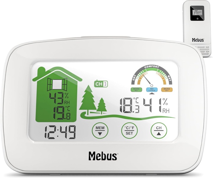 - цифровий термометр для внутрішнього і зовнішнього застосування і гігрометр: досить поглянути на поточну температуру в приміщенні і на вулиці в °C або °F і вологість в приміщенні в %.
