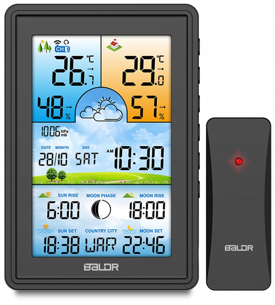 пристрій автоматично синхронізується з датчиком і має можливість підключення додаткових датчиків. У той же час він показує вимірювання зі станції і з датчика, які ви легко прочитаєте на кольоровому дисплеї.