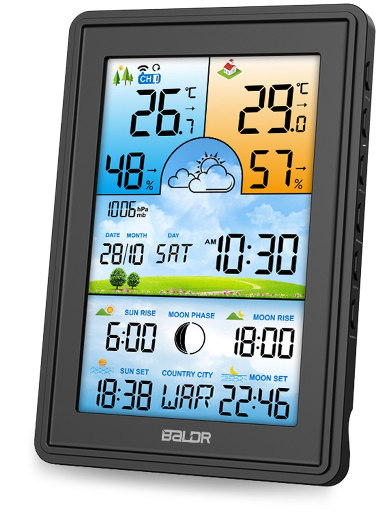 • метеостанція з вбудованим гігрометром дозволяє контролювати і підтримувати відповідний мікроклімат в приміщенні або на вулиці.