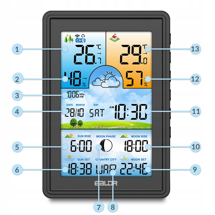 також буде працювати як календар, годинник і будильник. з цим пристроєм інформація про погоду, фазах Місяця у вас під рукою!
