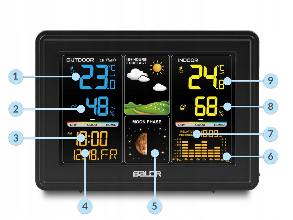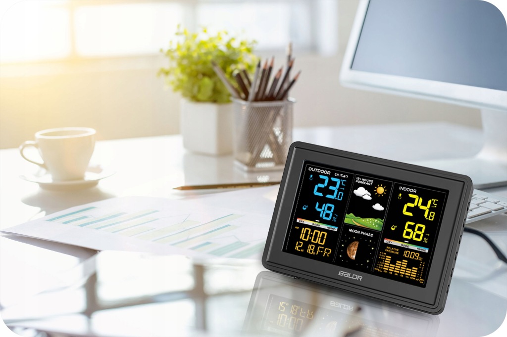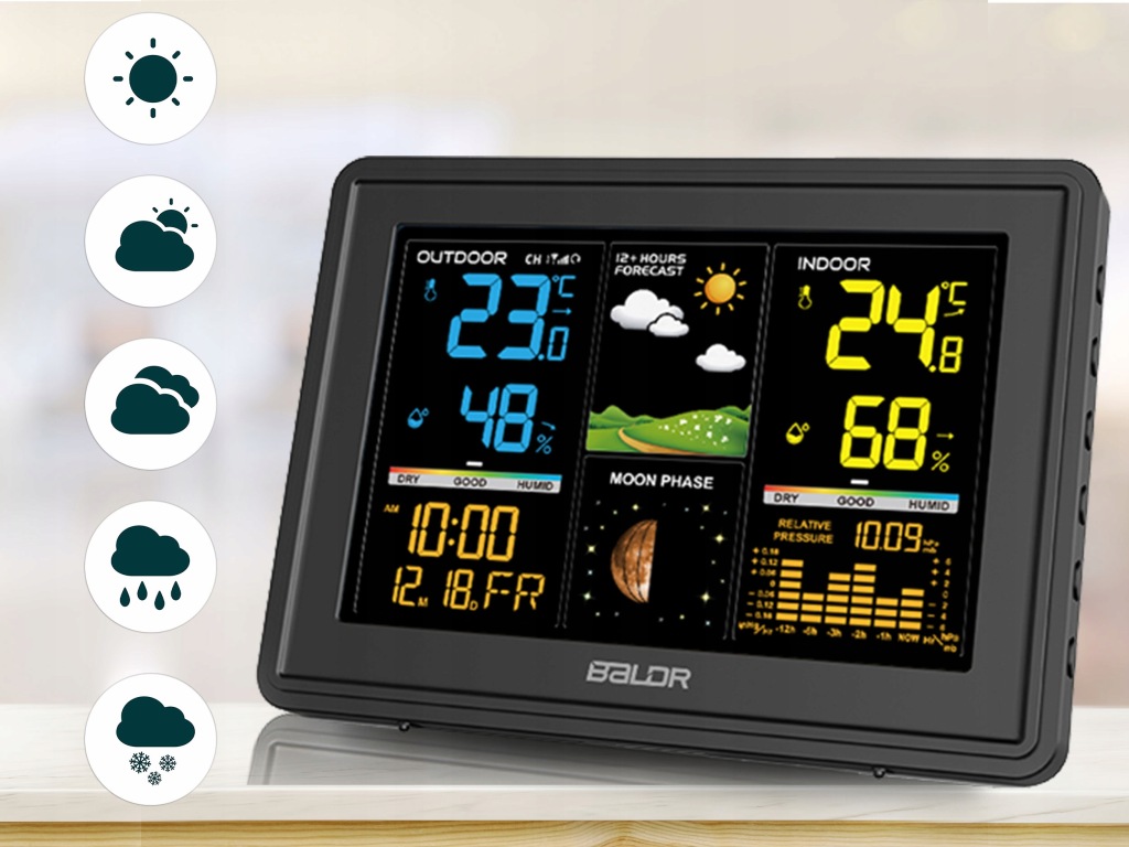 • метеостанція з вбудованим гігрометром дозволяє контролювати і підтримувати відповідний мікроклімат в приміщенні або на вулиці.