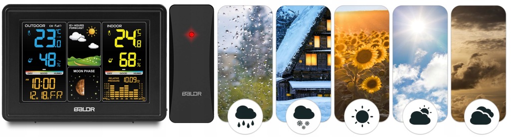 • завдяки безперервним вимірам температури, тиску і вологості станція аналізує і дає прогнози погоди на найближчі 12-24 години.