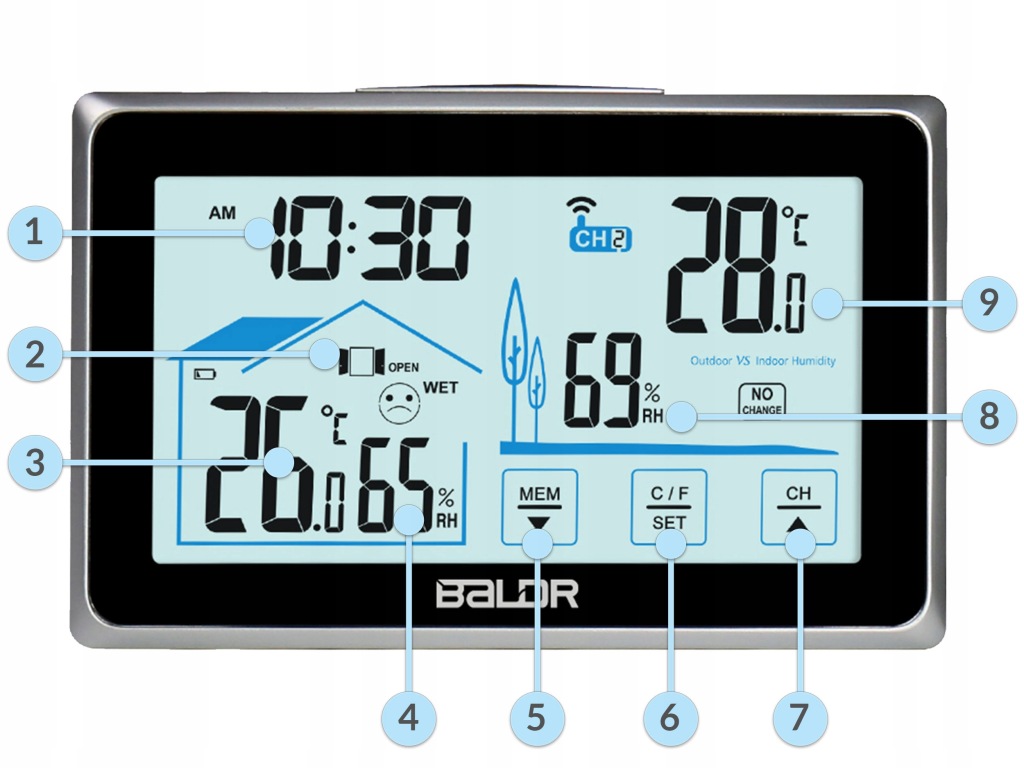 - метеостанція з вбудованим гігрометром дозволяє контролювати і підтримувати відповідний мікроклімат в приміщенні або на вулиці.