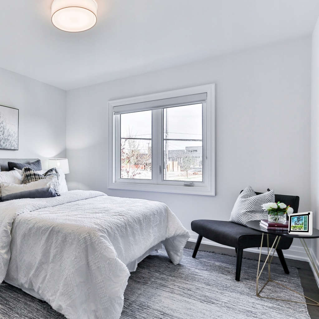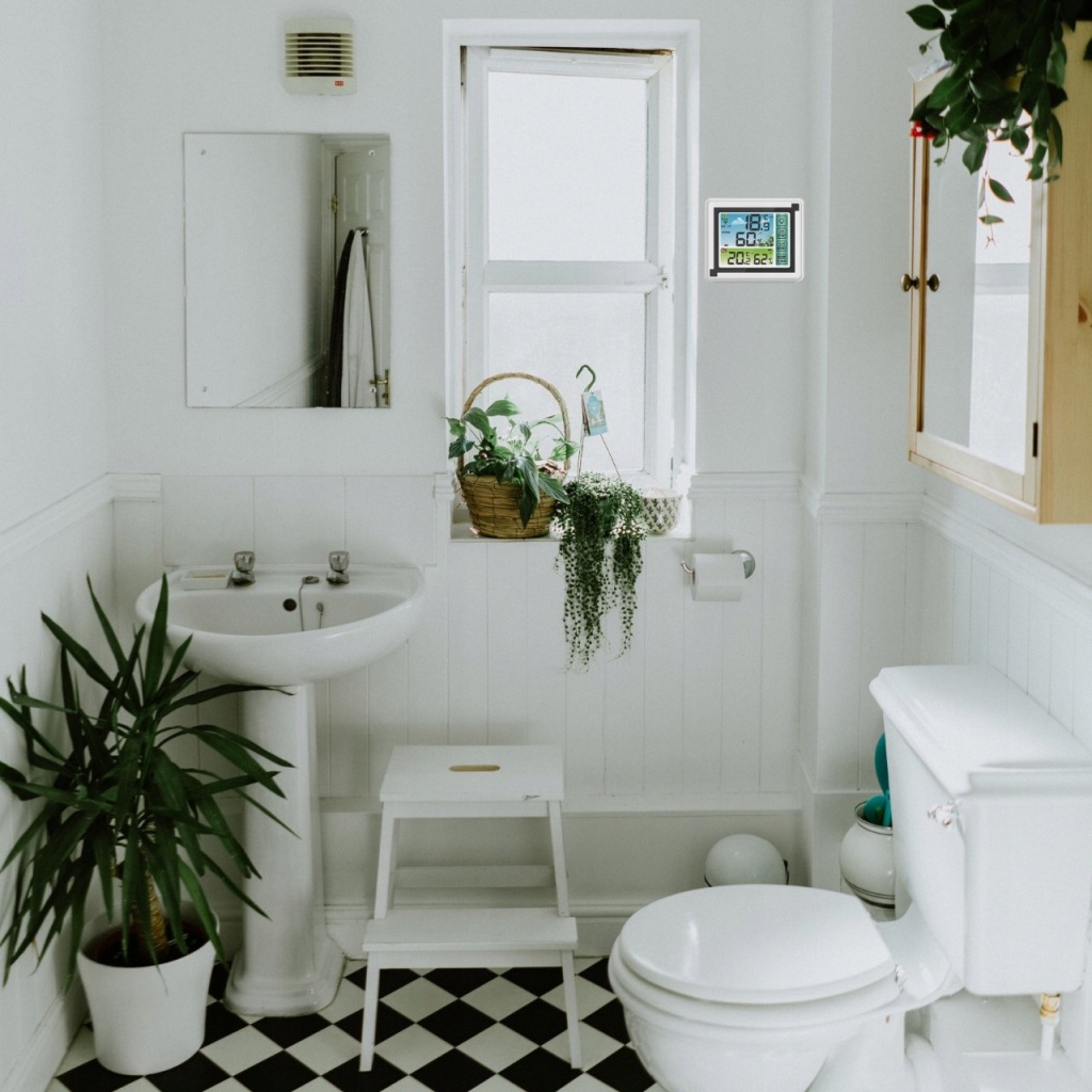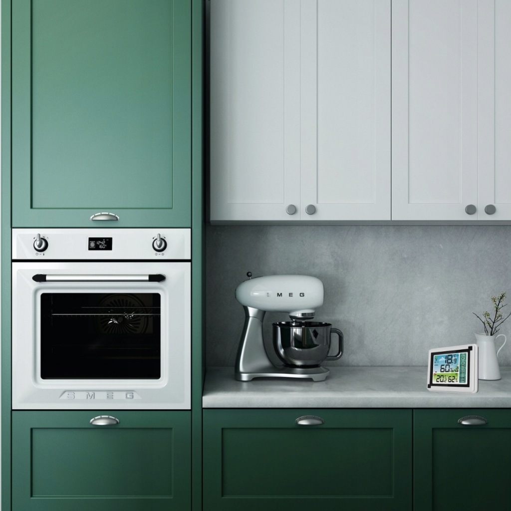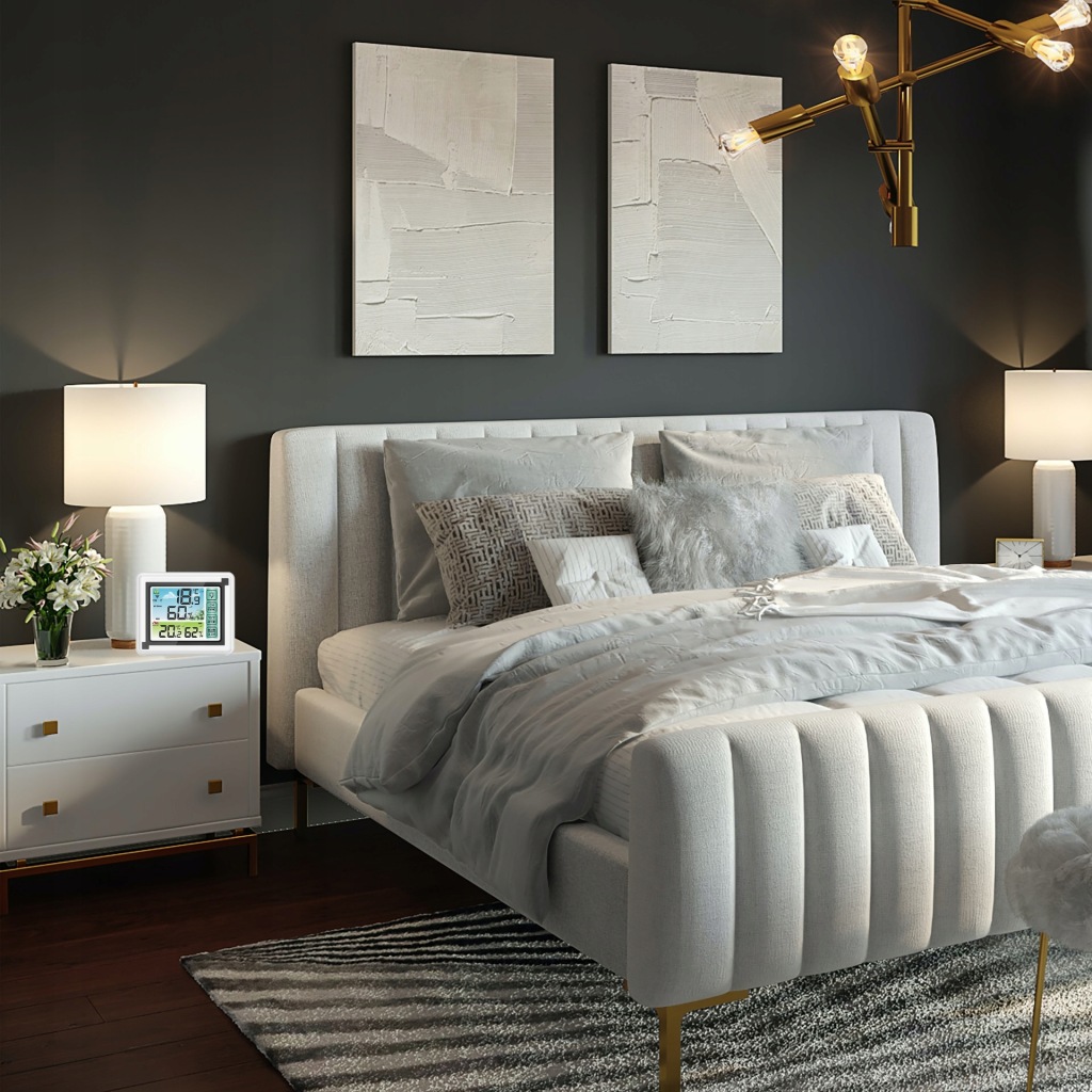 зручний прилад для щоденного контролю температури в приміщенні . Він також має додаткові функції вимірювання вологості .продукт оснащений зручним для читання РК-дисплеєм . Виготовлений із пластику білого кольору, підходить для інтерʼєрів з різною колірною гамою.Станція може бути встановлена безпосередньо на столі або полиці або підвішена на стіні в будь-якій кімнаті.