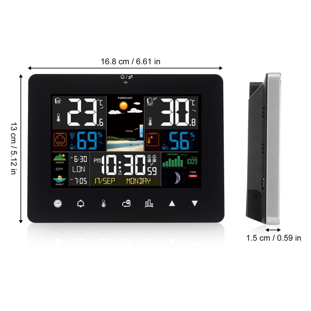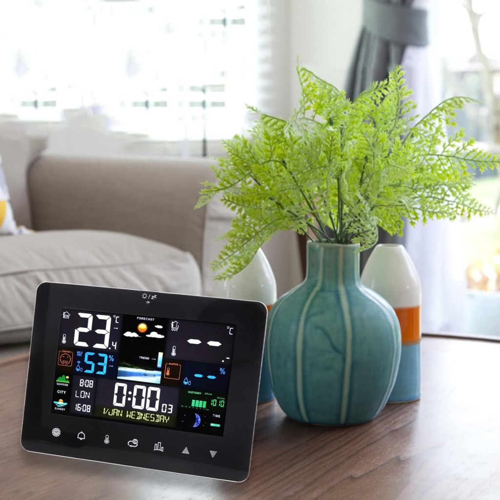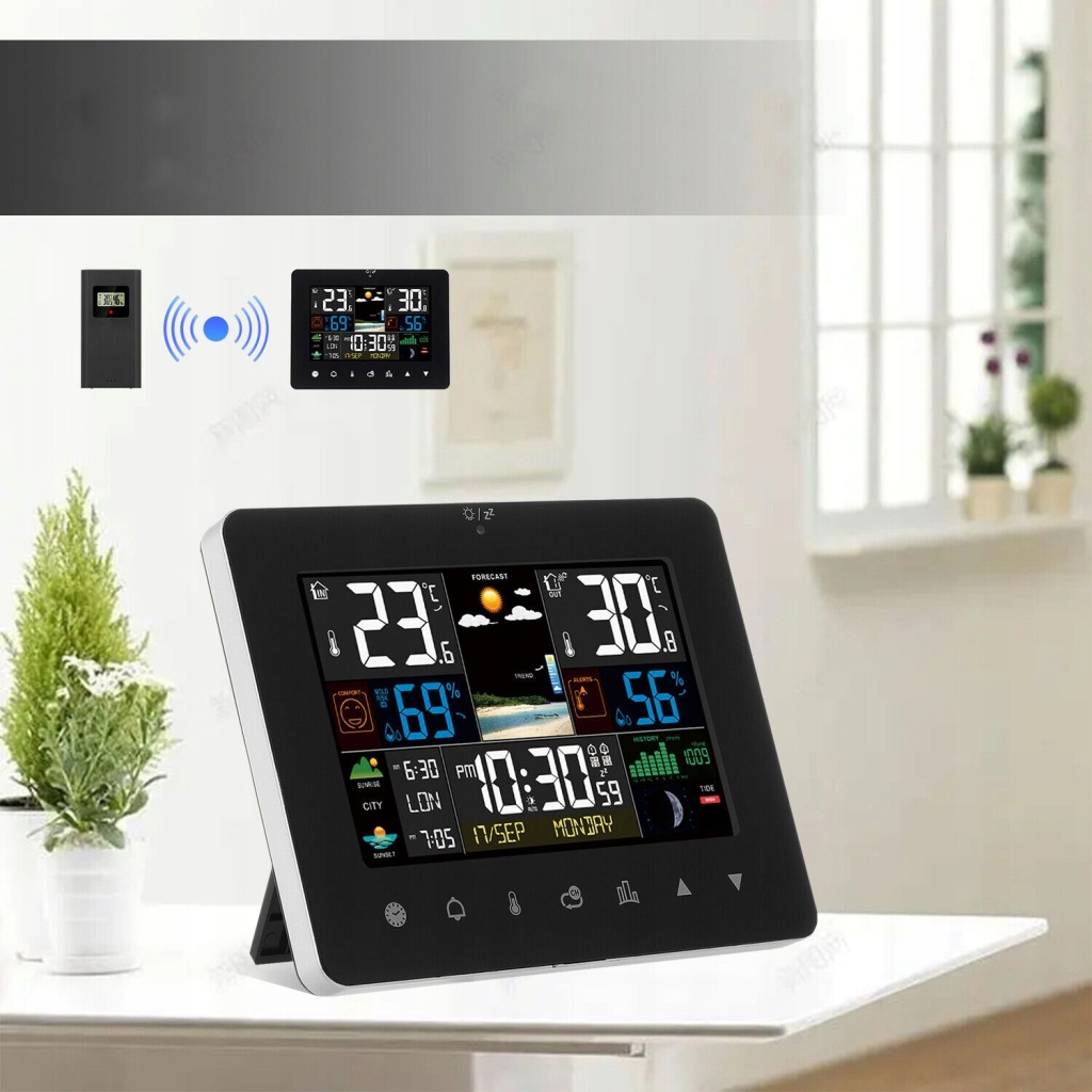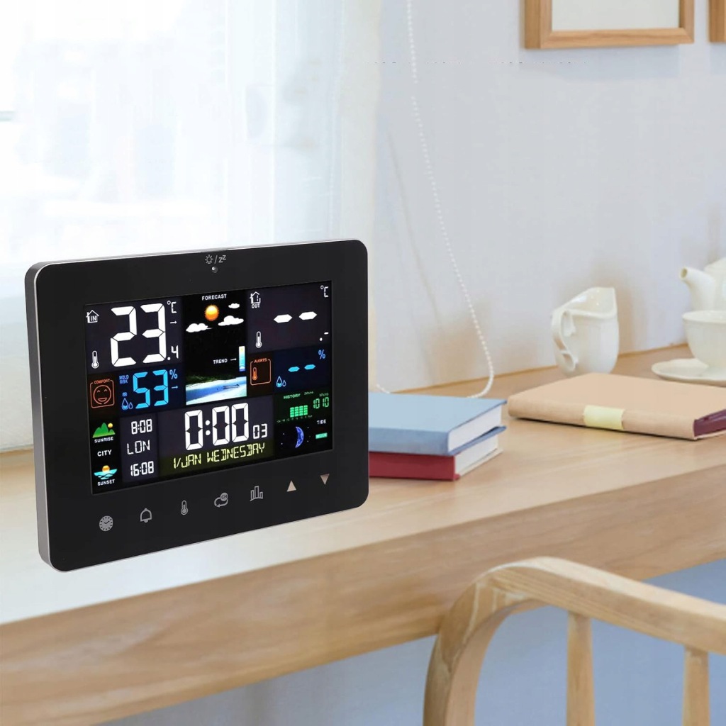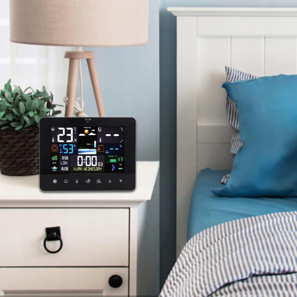 【【елегантний зовнішній вигляд】 метеостанція не тільки виглядає елегантно, але і чорний корпус і чіткий регульований кольоровий дисплей полегшують читання в нічний час.