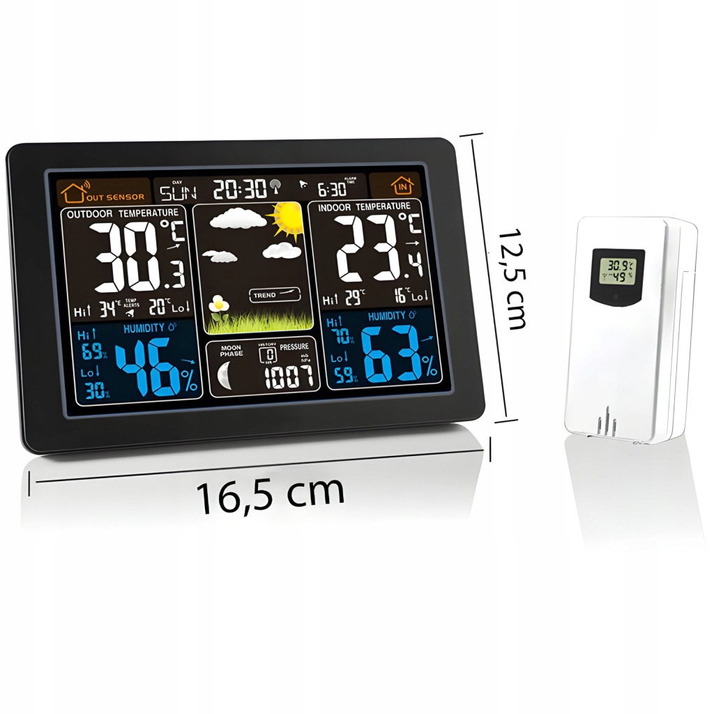 БЕЗДРОТОВА МЕТЕОСТАНЦІЯ З РК-ДИСПЛЕЄМ, ГІГРОМЕТР, БАРОМЕТР DCF + ДАТЧИК