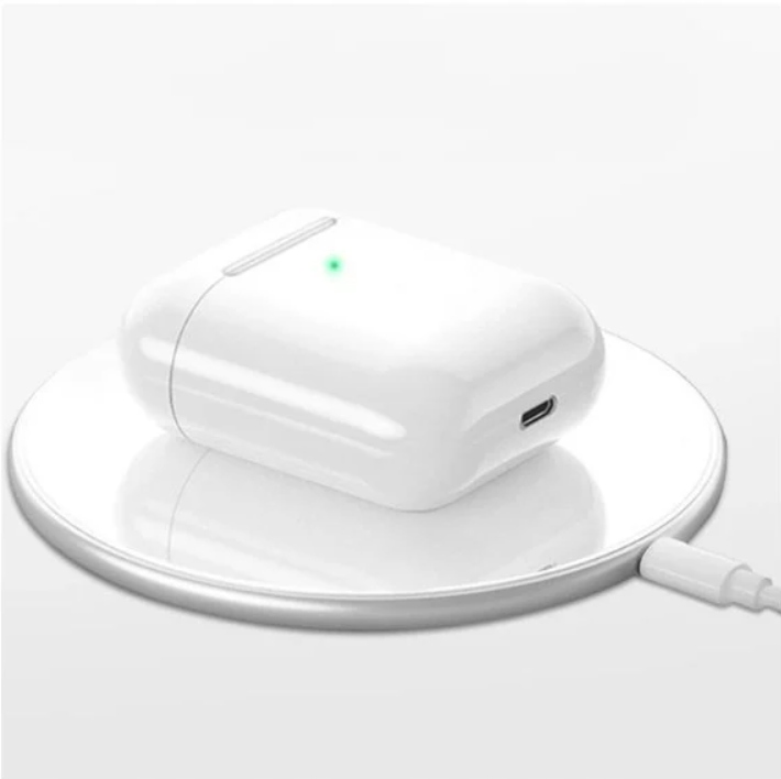 зарядка навушників здійснюється по бездротовій мережі, поміщаючи їх в чохол з вбудованим акумулятором. Просто помістіть навушники в чохол, і процес зарядки почнеться автоматично.