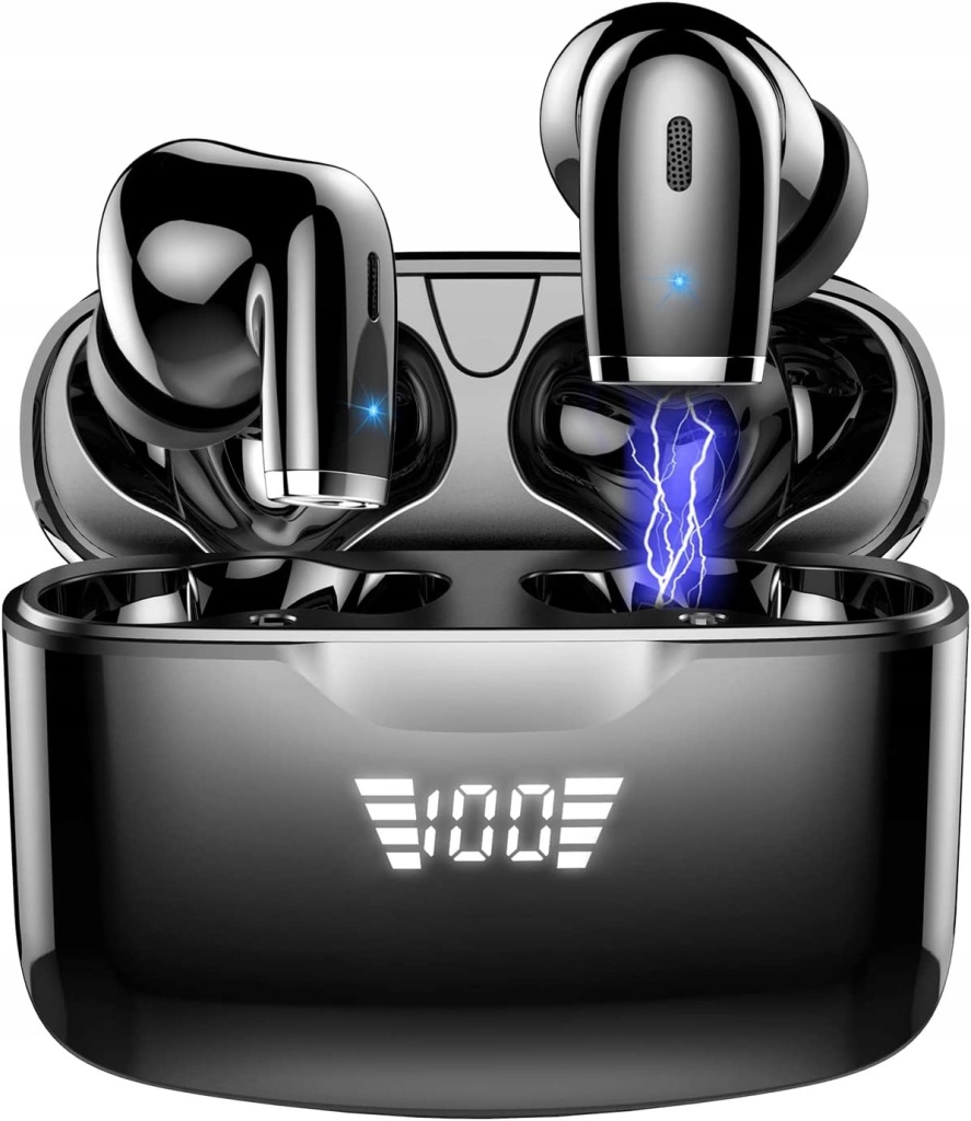 бездротові навушники, навушники Bluetooth 5.3, стерео навушники з драйверами 13 мм, справжні бездротові навушники з Світлодіодний дисплей, звук преміум з часом відтворення 40 годин, гарнітура ip7 для бігу, чорний