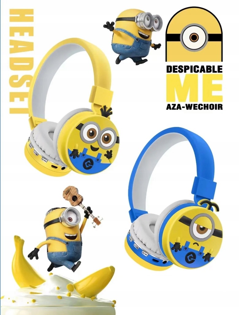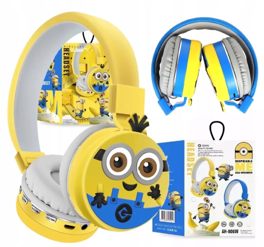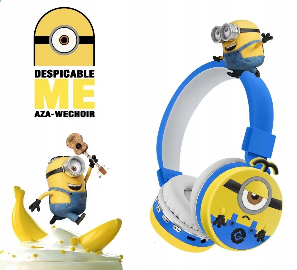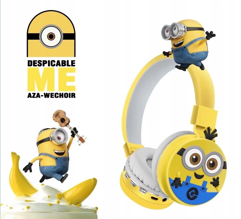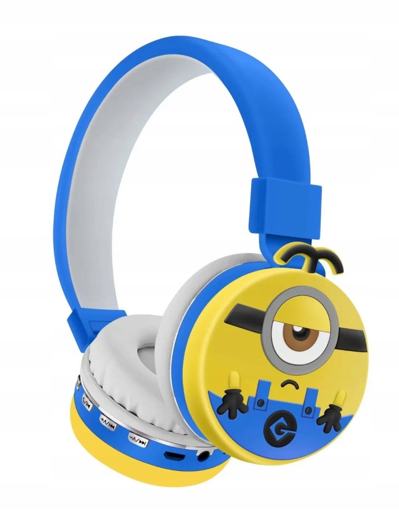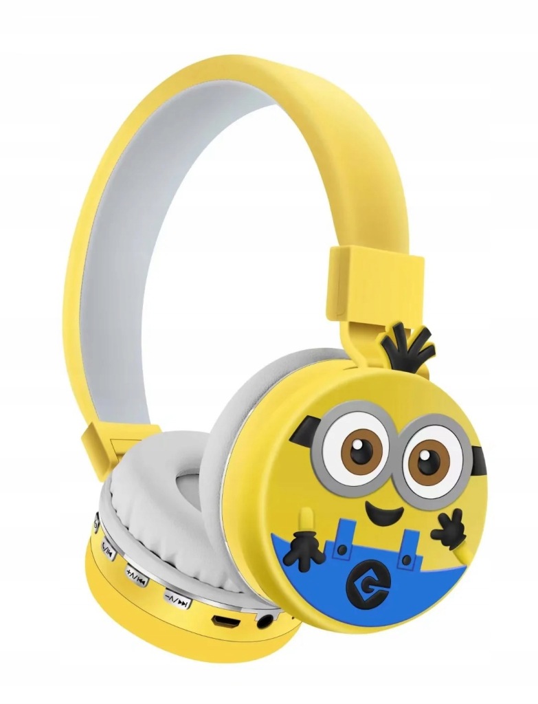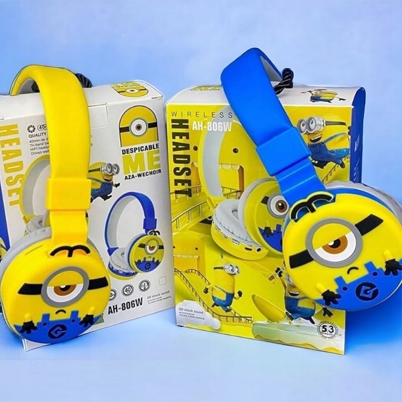 пориньте у світ музики і пригод з бездротовими навушниками з мікрофоном для дітей, прикрашеними зображенням міньйона з популярної казки Міньйони.