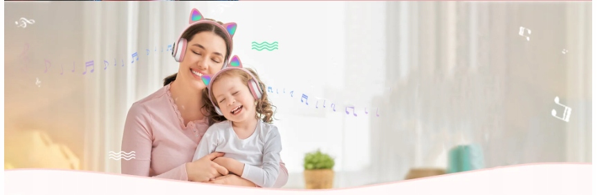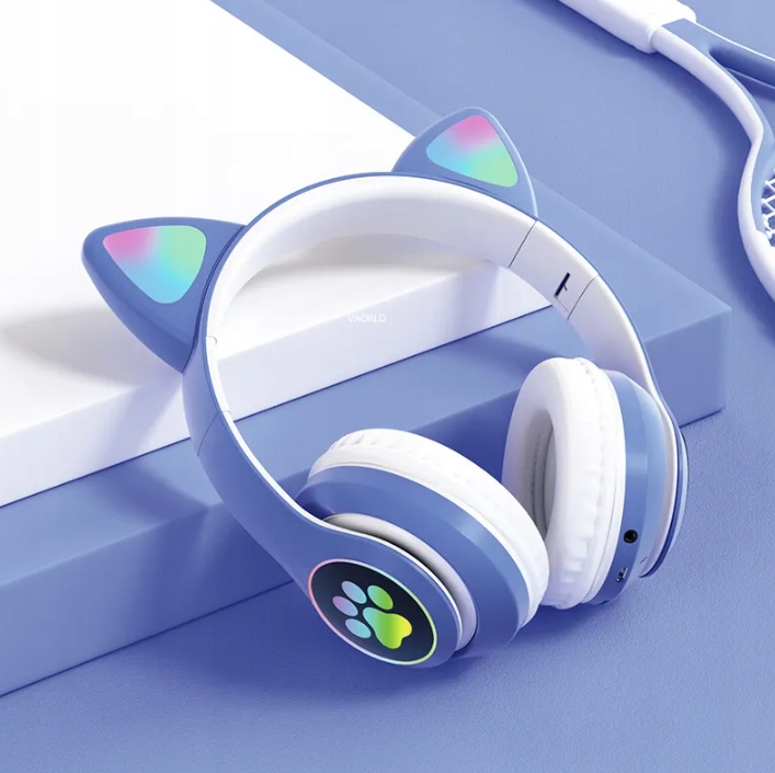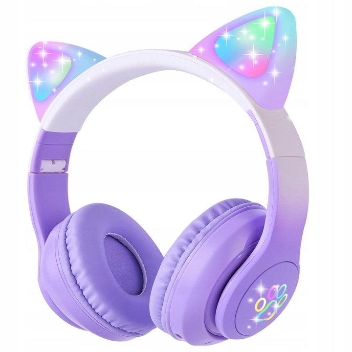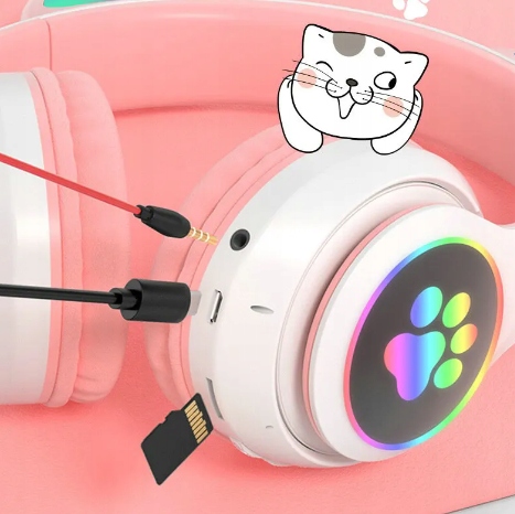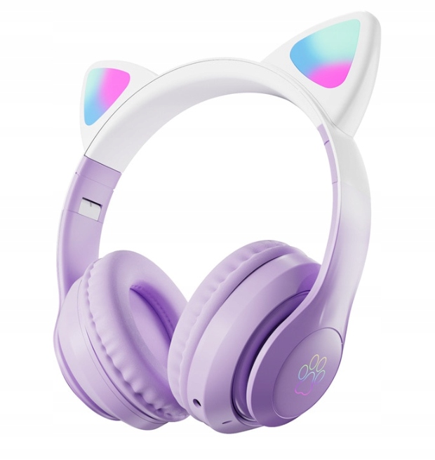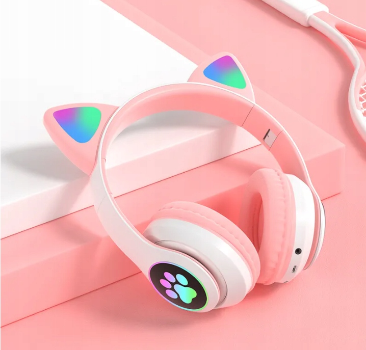 БЕЗДРОТОВІ НАВУШНИКИ ДЛЯ ДІТЕЙ СВІТЯТЬСЯ КОТЯЧІ ВУХА І НАВУШНИКИ