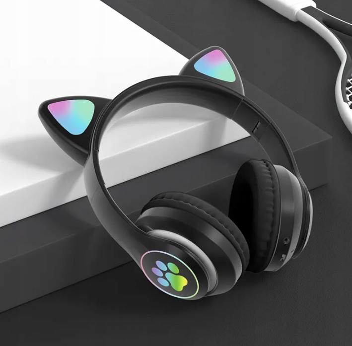 - зовнішній вигляд: навушники мають відмітний зовнішній вигляд, який обовʼязково приверне увагу дітей і підлітків. котячі вуха і навушники підсвічуються.