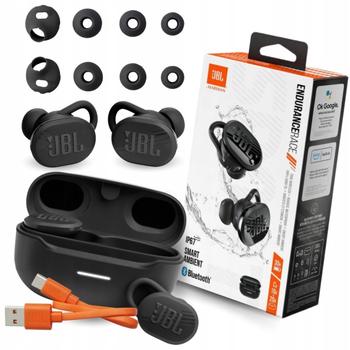 JBL Endurance race TWS - це водонепроникні і пилонепроникні (IP67), істинно бездротові, внутрішньоканальні спортивні навушники. Міцна, відмінна форма, відповідна активному контакту життя.
