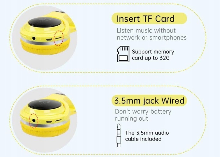 технологія Bluetooth V 5.0-бездротовий звʼязок, тобто відтворення музики, наприклад, з телефону.ефективний діапазон до 10 м.ідеально підходить для портативних CD/DVD/MP3-плеєрів, компʼютерів, консолей і т. д. вбудований мікрофон дозволяє вести розмови безпосередньо з навушників при підключенні до телефону через модуль Bluetooth. є можливість відповідати і завершувати телефонні дзвінки.