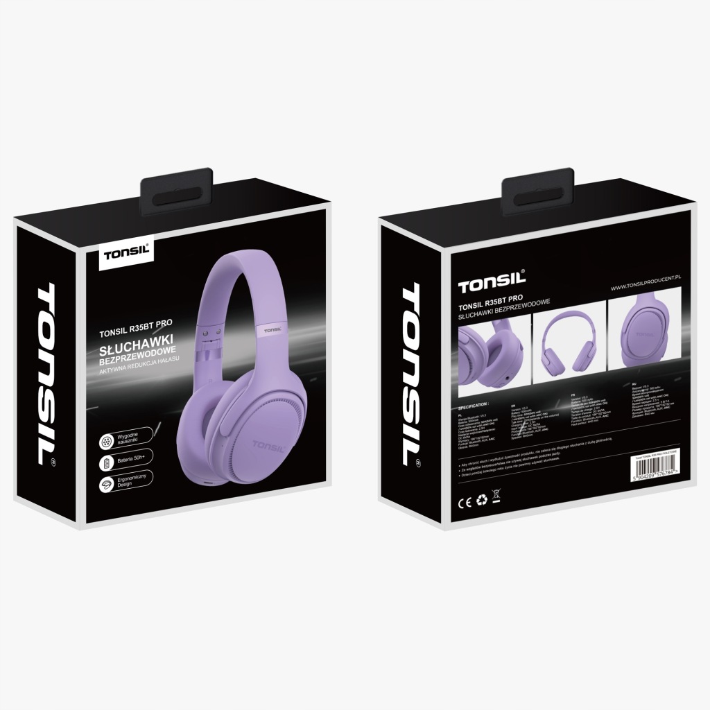 Бездротові навушники Tonsil r35bt PRO Anc фіолетові накладні навушники Bluetooth