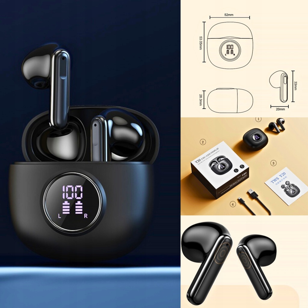 Бездротові навушники TWS Y20 ENC 2 Мікрофона водонепроникний світлодіодний екран BT5.3