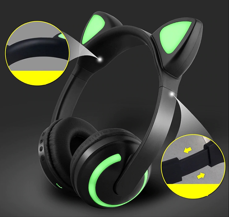 унікальний корпус навушників з освітленими котячими вушками викличе посмішку на обличчі будь-якого молодого меломана і шанувальника компʼютерних ігор.