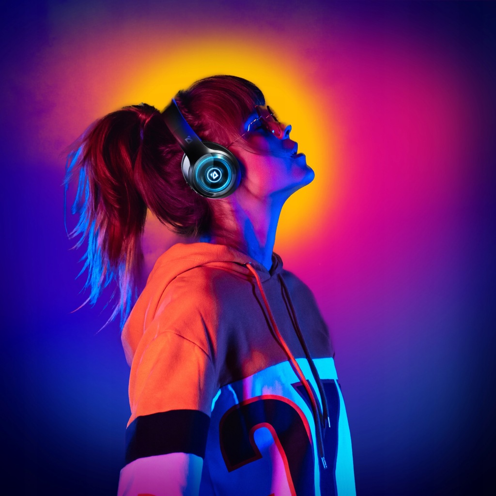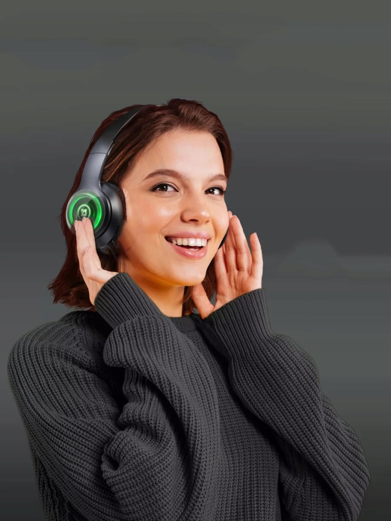 зручні і регульовані✅ бездротові навушники з мʼякими амбушюрами, що дозволяють носити їх протягом декількох годин без дискомфорту . Для цього еластичне наголовʼя може бути ідеально відрегульовано.