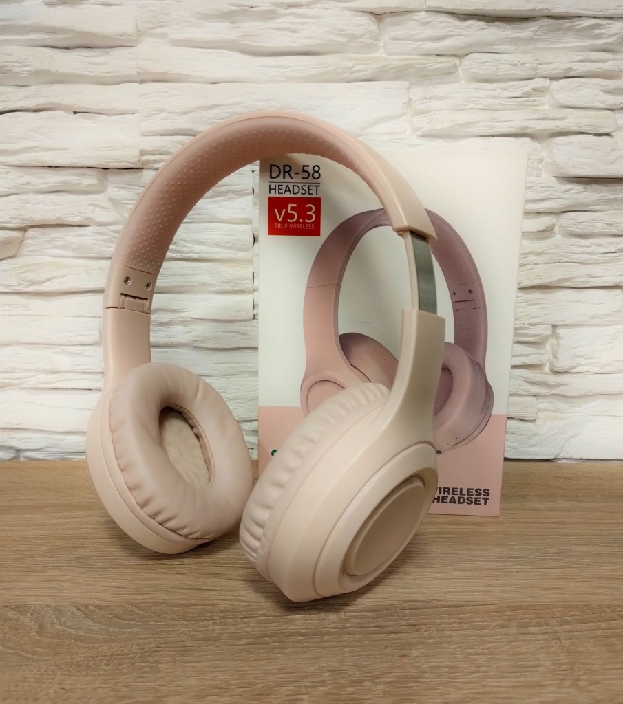бездротові навушники DR-58 відрізняються компактною, але складною конструкцією. Їх переміщення повністю безпроблемно. Пристрій не займає багато місця в складеному вигляді, тому поміститься в будь-яку сумку або рюкзак. Це справжнє задоволення для людей, які хочуть насолоджуватися високоякісним звуком на ходу, під час бігу підтюпцем або прогулянки з собакою.