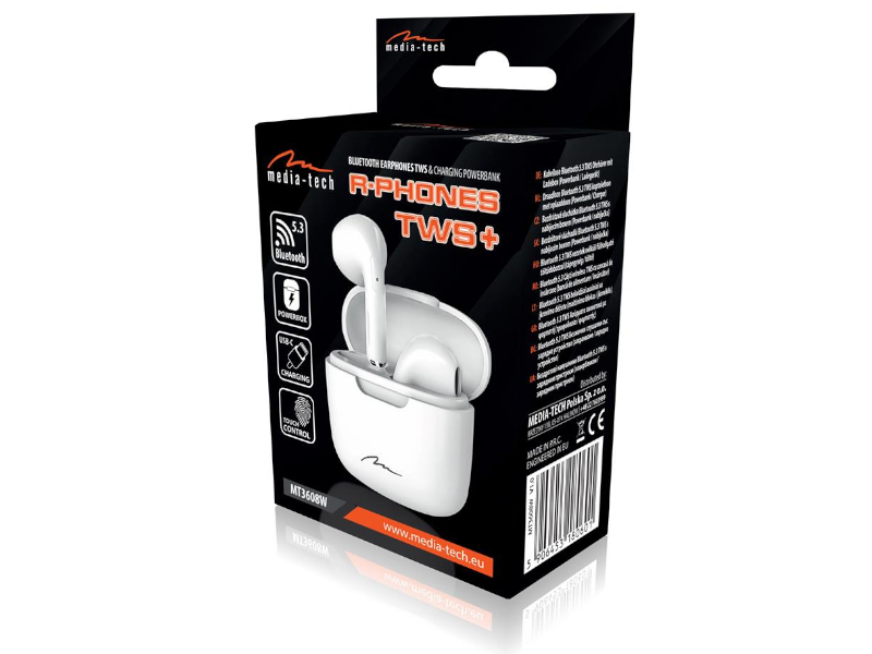 R-PHONES TWS+ розроблені з урахуванням комфорту, функціональності і надійності ці навушники пропонують високоякісний стереозвук в поєднанні з передовими технологіями, які забезпечують безперебійну роботу і сумісність з більшістю пристроїв Bluetooth. У навушниках використовується технологія True Wireless Stereo (TWS), яка дозволяє автоматично підключати обидва навушника, як тільки вони виймаються з футляра (Powerbox). Це робить навушники готовими до використання відразу після видалення, усуваючи необхідність ручного сполучення, що робить їх ідеальним вибором для тих, хто цінує зручність.