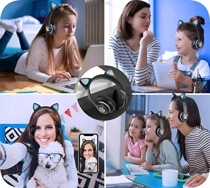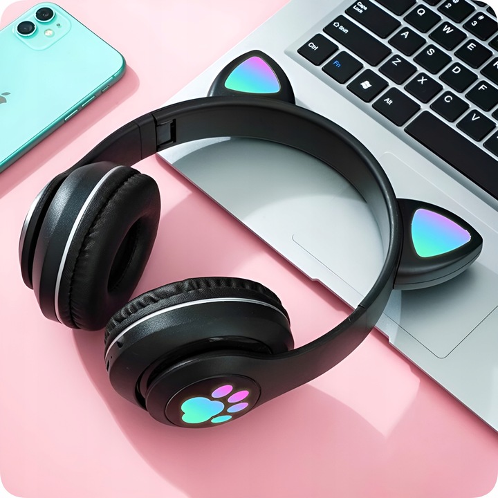 БЕЗДРОТОВІ НАВУШНИКИ З КОЛЬОРОВИМИ КОТЯЧИМИ ВУШКАМИ ДЛЯ ДІТЕЙ
