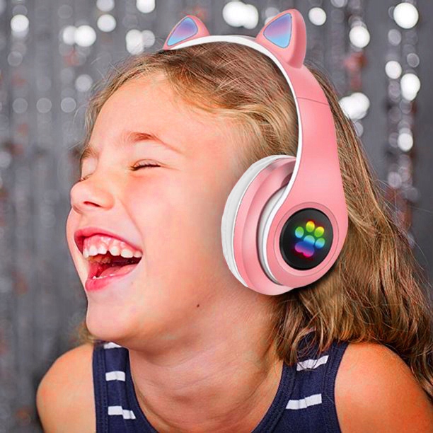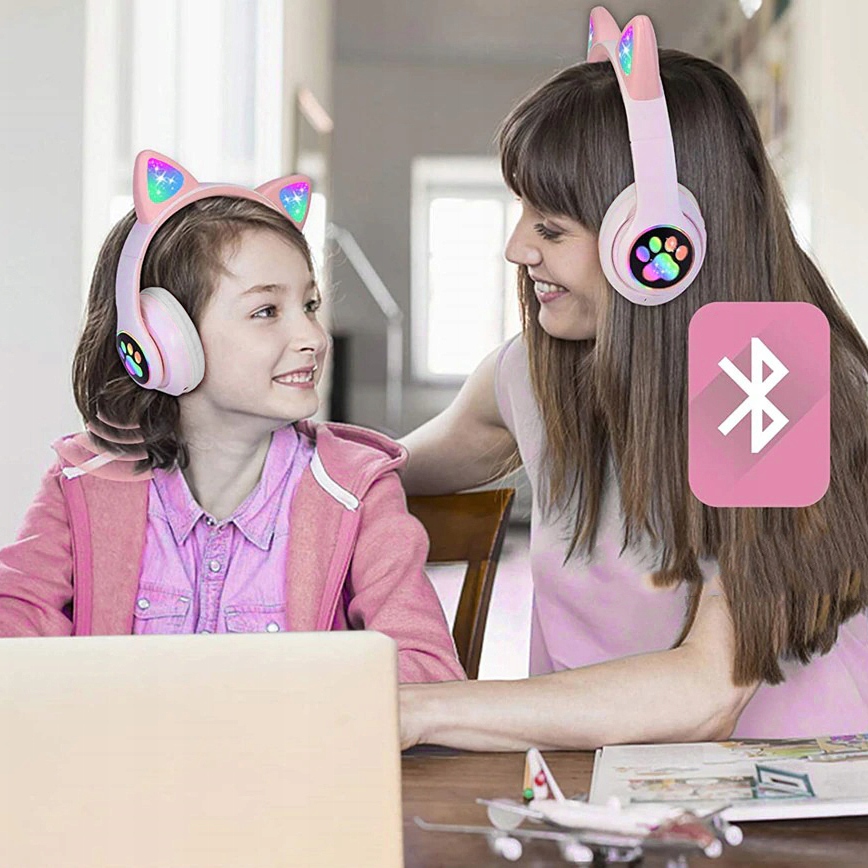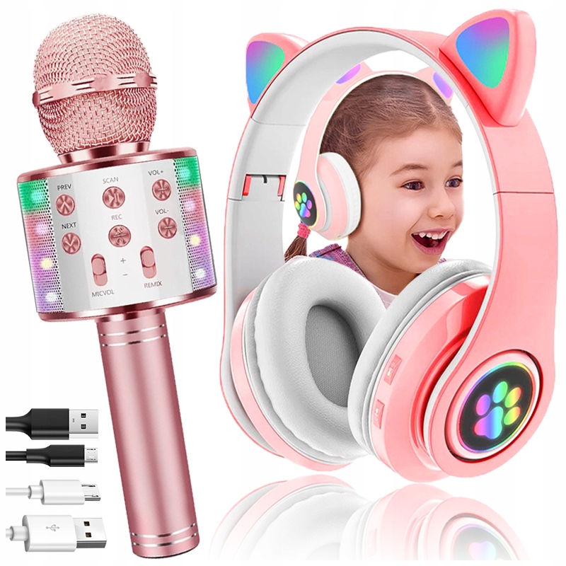 БЕЗДРОТОВІ НАВУШНИКИ З КОТЯЧИМИ ВУШКАМИ, МІКРОФОН ДЛЯ КАРАОКЕ, НАБІР RGB BT