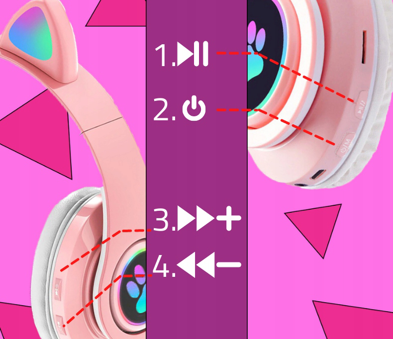 навушники оснащені стильною RGB підсвічуванням . Лапки з боків і вуха навушників повільно змінюють колір.
